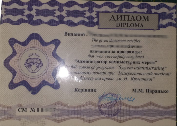 Systems Administration Certificate (2003)